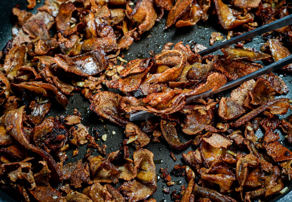 Gib die Walnüsse und restlichen Zutaten hinzu und brate alles weitere 4 Min an. Hab hier Geduld, der Tofu braucht etwas, um wirklich knusprig zu werden. Willst du ihn authentisch wie Gyros haben, braucht es das Knuspererlebnis wohl nicht. Entscheide hier also gern nach Geschmack.