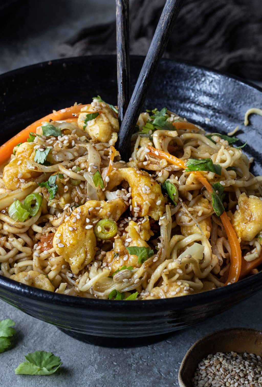 Toppe mit Koriander und Sesam