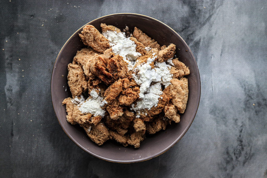 Vermenge das Granulat mit 3 EL Sojasosse und 3 EL Speisestärke.