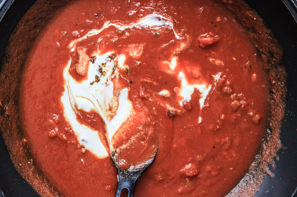 Gib die passierten, sowie gehackten Tomaten und 100g Joghurt hinzu und köchle alles 5 Min.