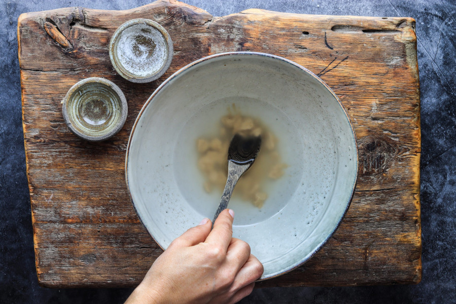 Vermenge das lauwarme Wasser mit der Hefe und dem Zucker und löse die Hefe auf