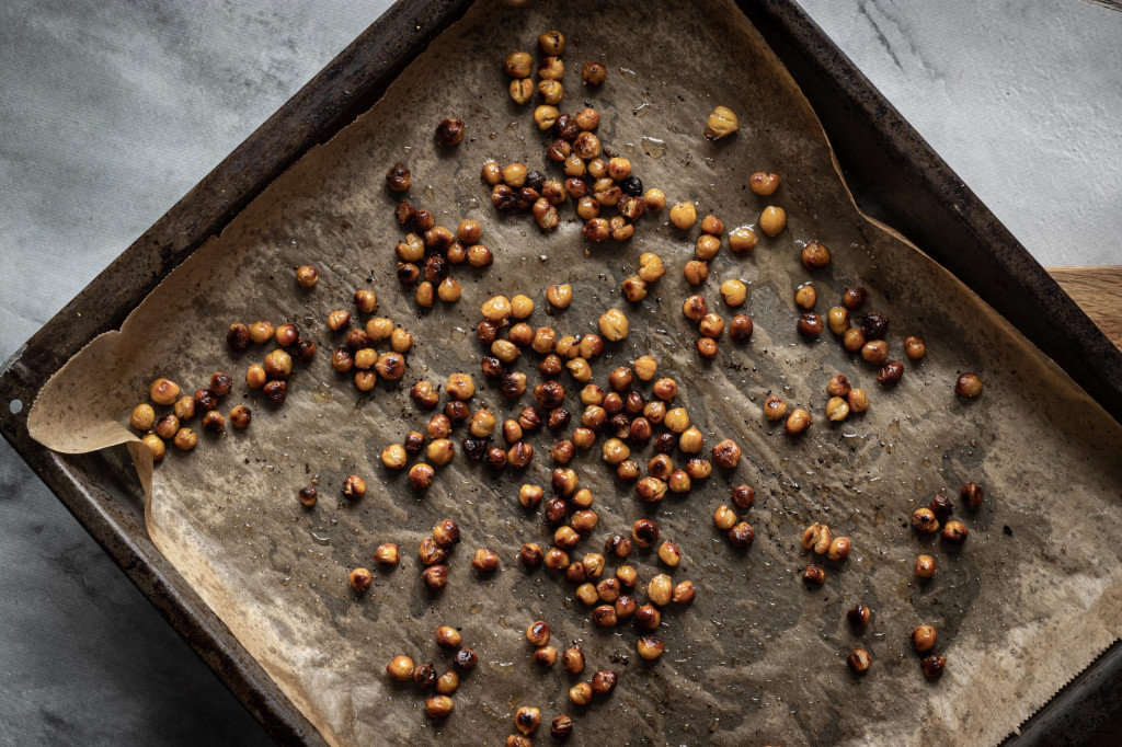 Das Geheimnis einer wirklich knusprigen Erbse ist die Backzeit und die richtige Menge an Öl. Beides habe ich euch im Rezept vermerkt. Achtet einfach darauf, die Kichererbsen nicht zu früh aus dem Ofen zu nehmen. Sie dürfen ruhig schön bräunen, um dann mit einem lauten “CRUNCH“ verzehrt zu werden.