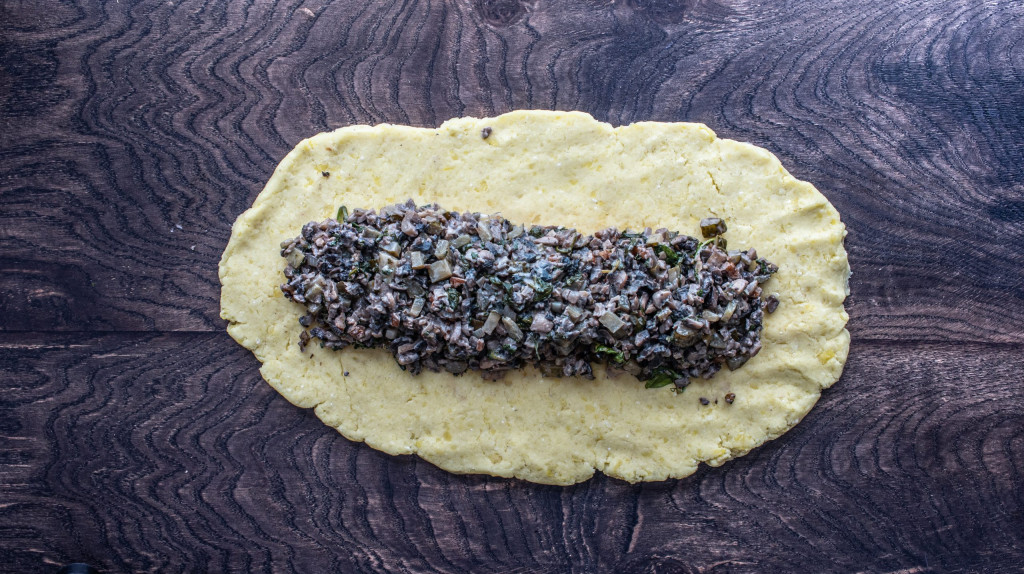2. Beim Verschliessen der Füllung schliesse kleine Risse oder offene Stellen einfach mit den Fingern. Die Masse hält wirklich gut zusammen.