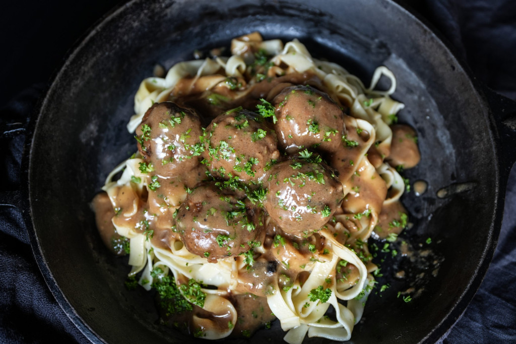 Aus veganem Hack werden himmlische Rosmarin-Hackbällchen. Und weil sie ohne köstliche Sauce nicht überleben könnten, schwimmen sie in einer ranstan-gemachten, super-cremigen Bratensauce im „Ikea-Style„. Dazu servieren wir Tagliatelle.