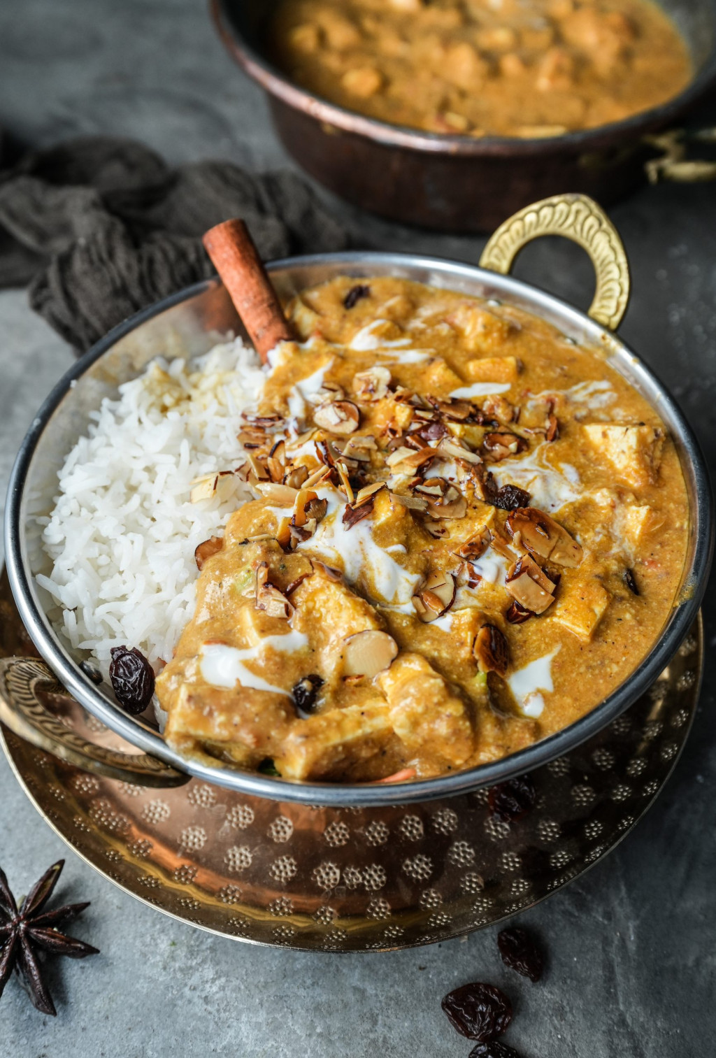 wer kennt den hausgemachten, indischen Käse Paneer eigentlich nicht. Ich kam zu Mischköstler Zeiten an keinem Restaurant vorbei ohne ihn zu ordern. Da er glücklicherweise relativ geschmacksneutral ist, habe ich mich getraut ihn zu veganisieren. Selbstverständlich mit Tofu. Dieser darf in einer Marinade aus Hefeflocken und Misopaste marinieren und kommt schlussendlich in eine super cremige Sauce aus Cashews, Kokosmilch und dem Aroma traditionell-indischer Gewürze.