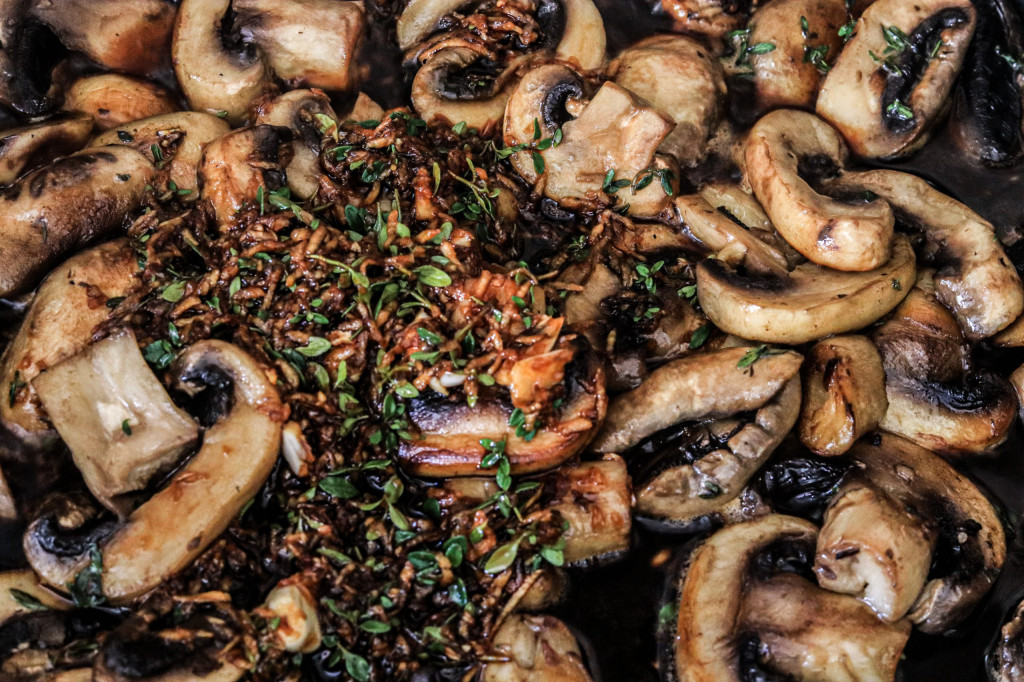 Ihr könnt auch gern frische Petersilie nehmen, wenn euch der Thymian nicht grad auf der Fensterbank wächst. Grundsätzlich macht sich für dieses Rezept allerdings Thymian besser. Denn er harmoniert unglaublich gut mit dem Röstaroma der Pilze.